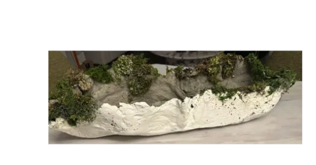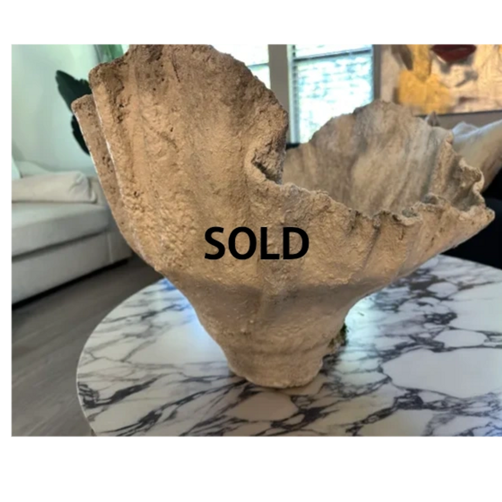 This giant scallop-shaped vase is a bold statement piece that blends raw nature with modern design. Handcrafted from solid cement, its sculpted ridges echo the curves of a seashell, giving it a striking architectural presence. Soft layers of natural moss are thoughtfully incorporated, adding texture, warmth, and a living-earth aesthetic that softens the industrial edge of the concrete.